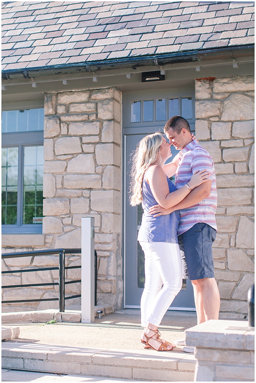 The next step was deciding on a location for the session. Since she and Matt live in St. Louis, Brittany suggested that they go to the same park where they had photos taken previously by their friend. I loved that idea because it meant it would be a new place for me to shoot in, which gives me all kinds of ideas. The location was the Laumeier Sculpture Park and it’s such a pretty spot for portraits. It was that perfect golden hour and Brittany and Matt did a fabulous job in front of my camera. I could tell they were a little quiet and shy at first, like most couples, but after asking how they met is when they started to get more talkative and comfortable. When I asked how they met, they both, at the same time, said the answer simultaneously…. online! I don’t know about you, but I’ve tried the whole online dating thing a few times and I have to say I’m done with it LOL. It’s turned out all crazy for me but I love hearing a good love story come out of it for others. I’ve had numerous couples that I’ve booked meet online so I know it works!